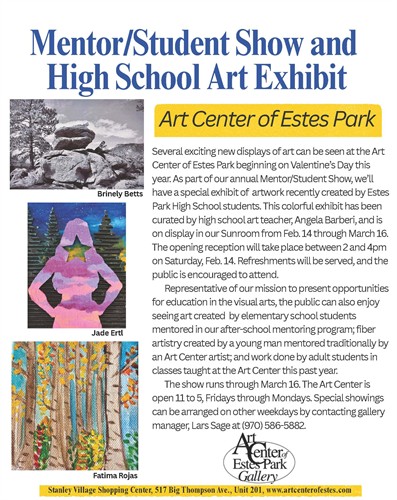 On display in the Sunroom during the run of this show will be an exhibit of artwork created by Estes Park High School Students.